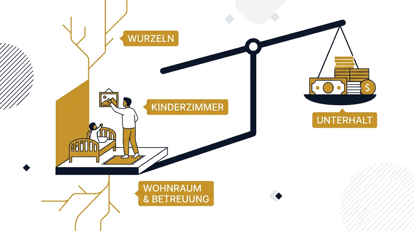 Wurzeln wachsen nicht im Gästezimmer. Sie wachsen nicht auf der Couch. Ein Kind braucht bei beiden Elternteilen einen festen Platz — das ist keine finanzielle Forderung. Das ist eine Frage des Kindeswohls.